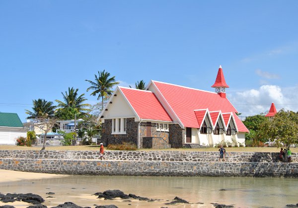 Petit village tout au nord de l'île Maurice, Cap Malheureux est affublé de ce nom évocateur en raison de la dangerosité de la navigation dans ses parages, qui entraina la perte de nombreux navires... mais loin de ces accidents passés, on profite désormais à Cap Malheureux du sable blanc des plages aux eaux calmes, gardées par des récifs de corail... Au large de ce cap, se dessinent les silhouettes caractéristiques des îlots du Nord : la réserve naturelle de Coin de Mire, l'île Plate et son phare, l'îlot Gabriel qui suit Pigeon's Rock et sa célèbre fosse à requins, l'île Ronde avec sa réserve d'oiseaux marins et de serpents et enfin l'île aux Serpents, injustement nommée puisqu'elle ne possède pas un seul reptile en son sol ! Ce lieu, que l'on ne peut pas rater, est mis en valeur par la petite église, catholique au toit rouge située au bord de la mer, l'église Notre-Dame-Auxiliatrice. (https://www.cityzeum.com/cap-malheureux)