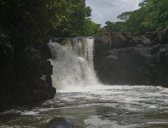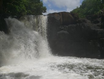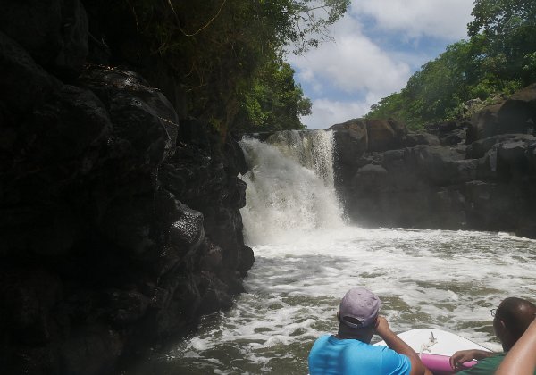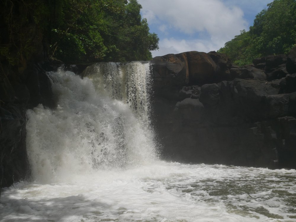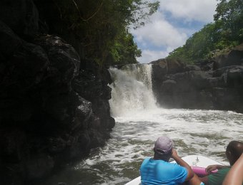 La plus grande rivière de l’île Maurice, Grande Rivière Sud Est, longue de 30 km, longe la chaîne de Montagnes Bambou avant de se jeter en Cascade jusqu’à son embouchure dans la Baie de l’Anse Cunat où elle se mêle à l’océan. Couvert d’une végétation luxuriante, l'estuaire se rétrécit de plus en plus vers les chutes et sert d'habitat à des singes, chauves-souris et beaucoup d'oiseaux. En pleine saison, il n'est pas rare que les embarcations fassent littéralement la queue devant les cascades ! (http://www.tara-sekoia.com/cascade-grande-riviere-sud-est/ - https://www.petitfute.com/v71116-grande-riviere-sud-est/c1173-visites-points-d-interet/c976-archeologie-artisanat-science-et-technique/c981-nature/48248-grande-riviere-sud-est.html)