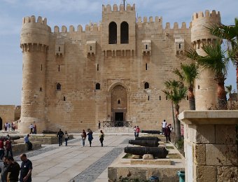 Cette citadelle a été construite par le Sultan Abounassr Al Mahmoudy en 882 de l’hégire, 1477 J.C ; sur le côté-est de l’île de Farous, à la place de l’ancien phare d’Alexandrie. Elle est l’une des plus importantes citadelles situées sur le littoral de la Méditerranée et elle a joui de l’intérêt des sultans et des gouverneurs égyptiens au fil des époques historiques. (http://sis.gov.eg/Story/940?lang=fr)