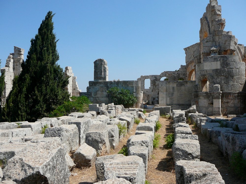 Situé dans le nord de la Syrie, le sanctuaire de Saint-Syméon érigé à la fin du Ve s. autour de la colonne du premier stylite, constitue la figure emblématique de l’ensemble des « anciens villages de la Syrie du Nord » inscrits en 2011 sur la liste du patrimoine mondial de l’UNESCO. Syméon-le-Stylite l'Ancien (vers 390-459), a été le fondateur d’une forme particulière d’ascétisme qui consistait à demeurer retiré au sommet d’une colonne, en prière. (http://archeologie.culture.fr/proche-orient/fr/saint-symeon)